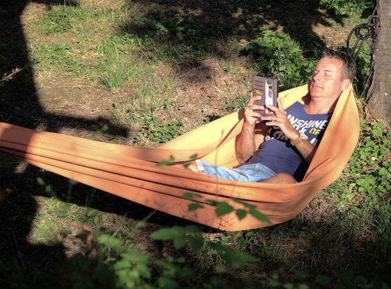 Private outdoor area with furniture and a hammock